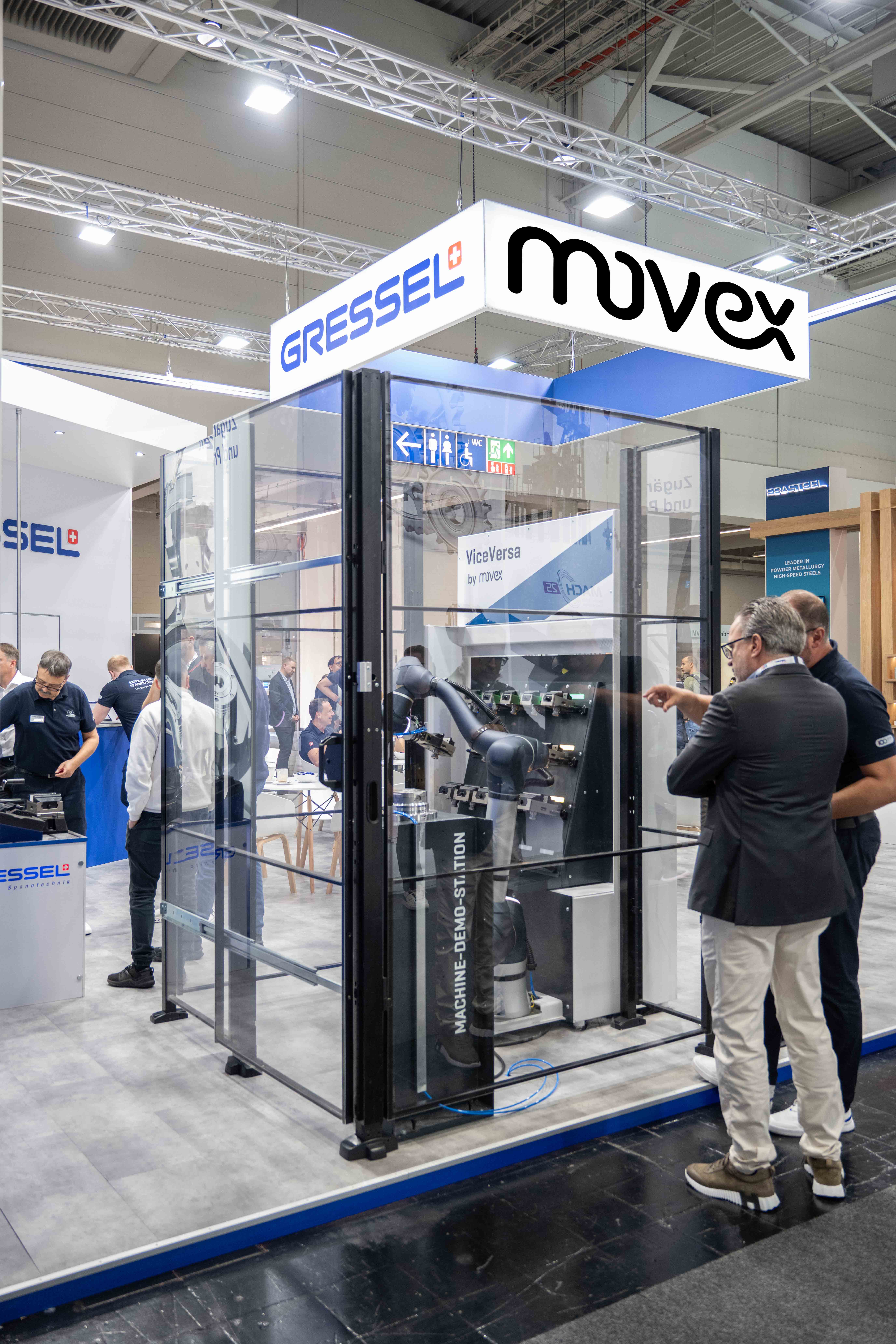 Auf der EMO feierten wir den offiziellen Launch unserer neuen Schraubstockautomation ViceVersa – erstmals vorgestellt unter unserer Automationsmarke movex. Die Lösung wurde in Kooperation mit GRESSEL entwickelt und überzeugte mit ihrer kompakten Bauweise, intuitiven Einrichtung über das Cobot-Robotersystem und der Möglichkeit, bis zu 40 Spannmittel effizient zu automatisieren.